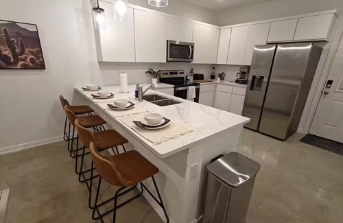Escape to this charming 2-bedroom, 2.5-bathroom retreat, perfect for families, couples, or small groups looking for comfort and style. Nestled in a neighborhood that is minutes from Downtown San Antonio, this property offers all the amenities you need for a relaxing stay.