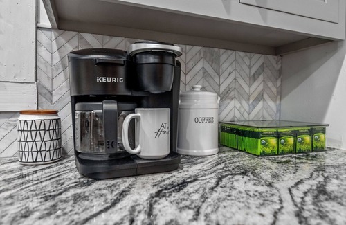 And a newly updated coffee station with K-cups, coffee beans and ground coffee