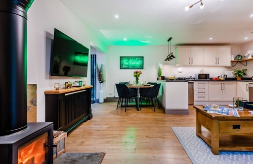 Entering this private and unique property is a marvel. Located in a tranquil wooded area of St Leonards, Ringwood, the experience begins at the double electric gates that open into a private parking area. Inside, the feeling of calm is immediate, with each room thoughtfully decorated to ensure a welcoming stay. The open plan living, kitchen, and dining area invites relaxation, offering a comfy sofa, a Smart TV, and a wood burner for cosy evenings after a day of exploring. The well-equipped kitchen is perfect for preparing a hearty breakfast or an evening meal. The property boasts two bedrooms, each designed for relaxation, and both feature en-suite bathrooms with double showers.