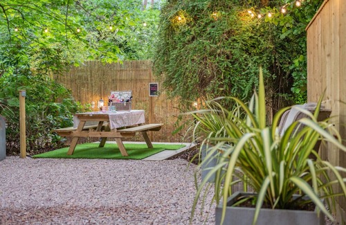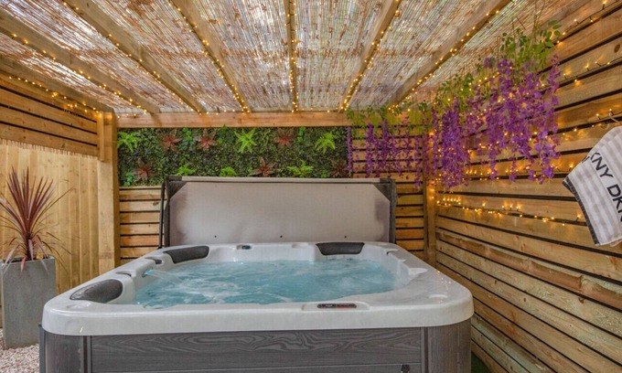 Step through the French doors to the rear garden, an oasis of natural beauty with well-maintained trees and plants. The hot tub area is designed for use in all British weather, perfect for a night under the stars with your favourite drink. For those seeking an invigorating experience, a cold-water single-person plunge pool awaits. At the front of the property, enjoy a restful moment on the comfortable outdoor seating, listening to the birds before heading inside for a good night's sleep.
