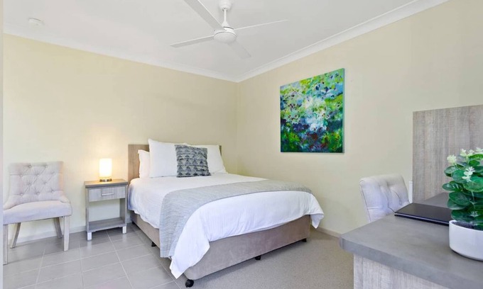 This newly completed suite is similar in size and layout to a compact hotel room – there is no kitchen included. It features a comfortable Queen Bed made up with luxurious 100% Organic cotton sheets, along with a bar counter and kettle area to prepare tea and coffee plus a small bar fridge. The generous ensuite bathroom is fully tiled. We also provide unlimited Wifi and reverse cycle air-conditioning.