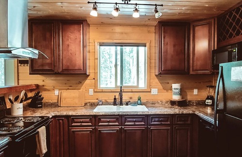 Both cabin styles at The Ridge at Glacier are completely furnished for all your cooking needs. Your full size kitchen has everything you need, from full size refrigerator, dishwasher, disposal, microwave, oven, stove and much more.