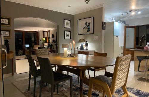 Providing a garden, The Ridgeback, 4 Bedroom Resplendent Living, Bryanston features accommodations in Johannesburg. This property offers a private pool, free Wifi, and free private parking. Sandton City Mall is 5.2 miles away and Gallagher Convention Centre is 9.2 miles from the vacation home. Featuring a patio and garden views, the spacious vacation home includes 4 bedrooms, 2 living rooms, cable flat-screen TV, an equipped kitchen, and 3 bathrooms with a bath and a shower. Featuring air conditioning, this unit has a dressing room and a fireplace. The property has an outdoor dining area. Montecasino is 4.3 miles from the vacation home, while Gautrain Sandton Station is 4.8 miles from the property. Lanseria International Airport is 14 miles away.