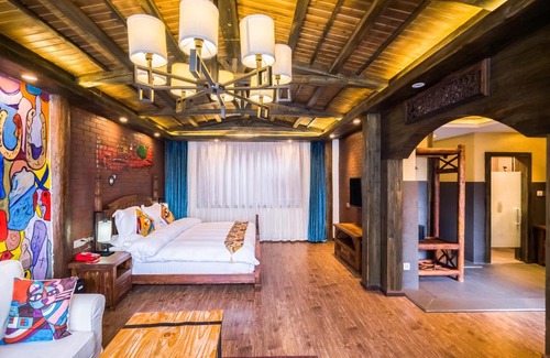 With pool views, The Ritz-Man Art Club Lijiang is situated in Lijiang and has a restaurant, a 24-hour front desk, bar, garden and terrace. The accommodation is air conditioned and has a spa bath. Each unit comes with a sofa, a seating area, a TV, a well-fitted kitchen with a dining area, a safety deposit box and a private bathroom with slippers. A dishwasher, a microwave and fridge are also available, as well as a kettle. Guests at the homestay can enjoy an Asian breakfast. The Ritz-Man Art Club Lijiang offers a hot tub. Guests can also relax in the shared lounge area. Popular points of interest near the accommodation include Square Street Shuhe Ancient Town, Sifang Tingyin Square and Nine-Tripod Dragon Pond. The nearest airport is Lijiang Sanyi Airport, 33 km from The Ritz-Man Art Club Lijiang.
