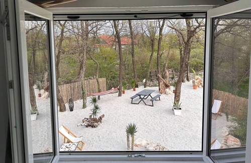 This is an exceptionally peaceful place, hidden from the public eye, where you can relax and enjoy complete tranquility and silence. Surrounded by natural beauty, you will feel how every stress and tension melts away under the beneficial influence of the environment. With not too many neighbors around, we will ensure your complete privacy, and you will feel like you're in your own kingdom. Whether you want to enjoy peace with a good book, listen to bird songs, or just meditate, this is the perfect place for you.