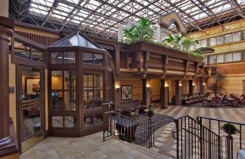 This nonsmoking hotel in Rockville, Maryland is only minutes from motorway I-270 and Washington, D.C. The hotel offers guest rooms with flat-screen TVs and free Wi-Fi. The Rockville Hotel, a Ramada by Wyndham features a fitness center with yoga studio. Guests can also dine on-site at the Atrium Cafe & Lounge. Free shuttle service within a 3-mile (5-km) radius is available at the Rockville Hotel, a Ramada by Wyndham. Johns Hopkins University and Sugar Loaf Mountain Winery are within a short drive of the hotel.