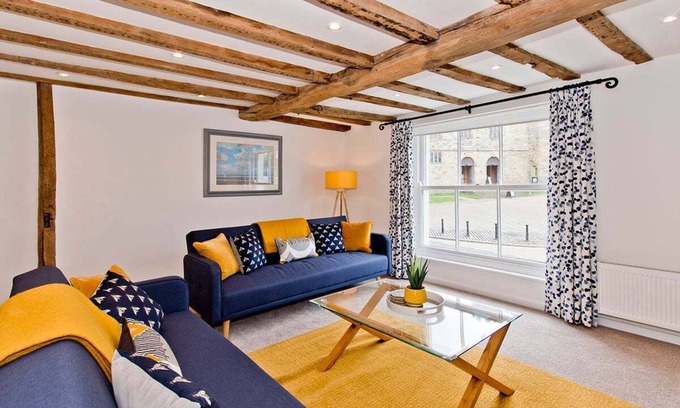 Entering the property, you are greeted with a stunning newly fitted kitchen dining room. French doors give access out onto the sun trap balcony if you prefer some alfresco dining or just to sit and relax. Moving through to the front of the property a large, bright recently decorated living room supplies stunning views of Battle Abbey, cosy and comfortable furnishings you can enjoy some of the historic beauty of battle without leaving the apartment. A turning staircase takes you to the upper landing. To the front of the apartment is the master bedroom with a classic Victoria style metal bed frame and high quality cotton linens. We are sure you will get a great night’s sleep and wake up to the views over the Abbey. The second bedroom is full of old world charm, two quality single beds provide a magical room for children to sleep in. A newly refurbished, modern family bathroom with a shower above the bath completes the property.
