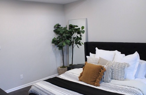 4 very spacious bedroom with one being a hotel style suit with a full bath and another being a master suite with a king bed and high custom ceilings. The home includes a patio deck off street parking as well as a open floor plan perfect for family gatherings.