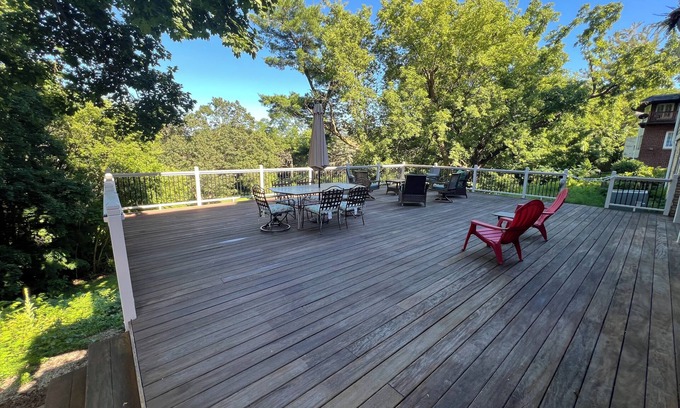 Your home away from home in Waukegan with 5 lovely bedrooms. This gorgeous house features 4 queen beds and 1 twin bed, perfect for families or groups of friends. Enjoy the convenience of amenities like AC, WiFi, and a washing machine. Relax in the living room with a cozy sofa bed for additional space. Relax outside on the large deck overlooking the beautiful back yard. With 1.5 bathrooms and and plenty of space to relax, your comfort is our priority. We hope you'll enjoy your stay at our house.