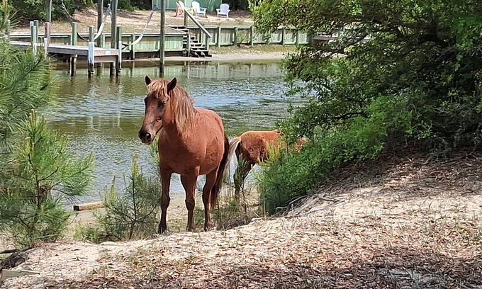 Wild horse sightings are almost guaranteed, in fact you will often see them right from the house dock and deck. In addition, you will see many different types of wildlife, including large birds in the canal.