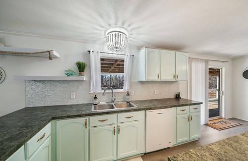 The modern beachy vibe will set the tone for a relaxing and adventurous vacation! Whether you want to do yoga on the large front porch with a view of woods and the river (yoga mat block and strap provided) or fish from the bank, Chillinois River Cabins will not disappoint! Full coffee and tea bar, hot tub, makeup station with body mirror, karoake station, drums and musical instruments epic huge fire pit and MORE!!