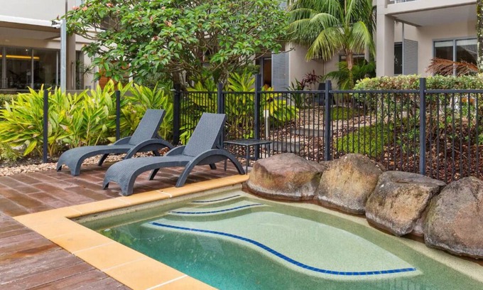 Welcome to your perfect coastal escape at the luxury Sand Resort, where you can walk directly from your suite along a private path into the main pool area.