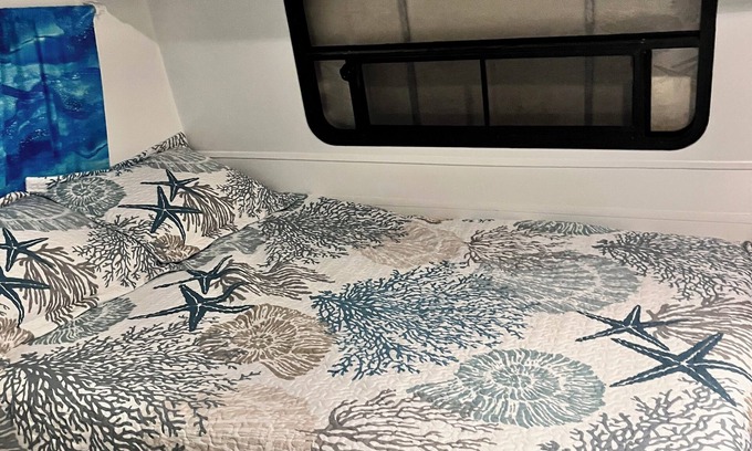 Stay at The Sandbox – a cozy vintage camper just steps from the beach, where lazy days, breezy nights, and the occasional big catch make memories you’ll love to reel in.
