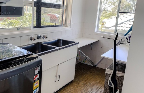 The Sandcastle is essentially made up of 2 seperate living spaces. The upstairs is made up of the master bedroom, laundry, main kitchen, second bedroom, bathroom, lounge and dining are as well as the outdoor terrace and it’s spectacular view. With no internal staircase, the downstairs space is it’s own entirely seperate 2 bedroom apartment complete with own kitchen and bathroom. Perfect for a teenage retreat or small groups needing their personal space. The backyard seamlessly runs into lush bush land and the picturesque Safety Beach!