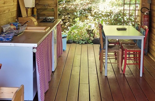 This wooden cottage with a total surface of 70m2 with covered and uncovered terraces is contiguous to my main home.