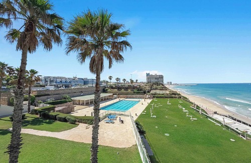 • The Sharon Hotel is an apartment hotel offering comfortable, private units on the Mediterranean coast, with stunning views of the Herzliya shoreline.
