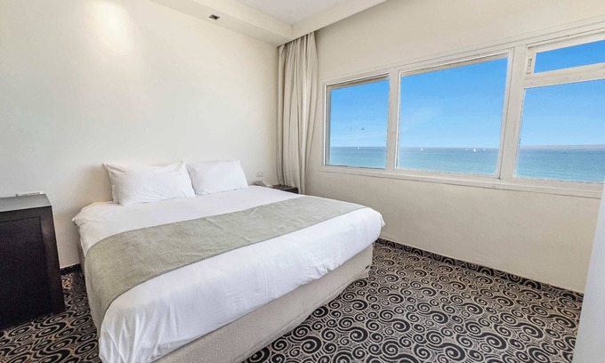 Perfect for solo travelers, couples, or small groups, this spacious apartment includes a plush queen bed, cozy open sofa, sleek modern bathroom, and a private balcony to enjoy the sea breeze.