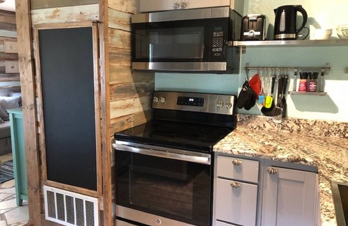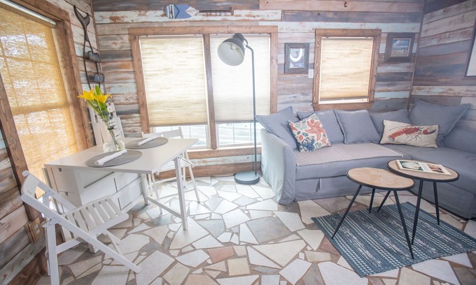 The Shell Cabin is a fun 1 bedroom/ 1 bath cabin. It has been decorated in the natural colors of the seashore. It has a sleeper sofa in the living area which can accommodate 2 people.