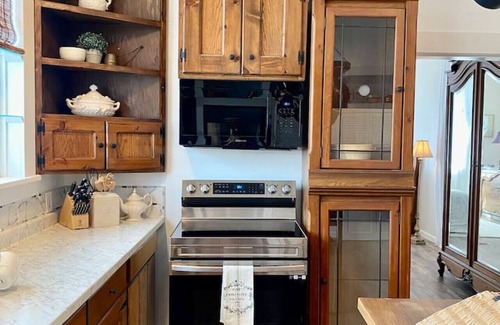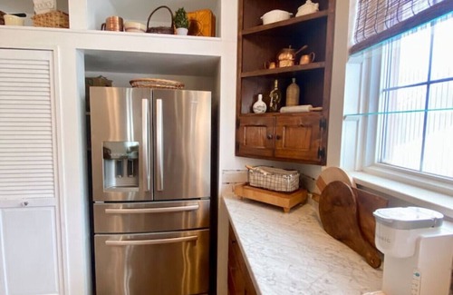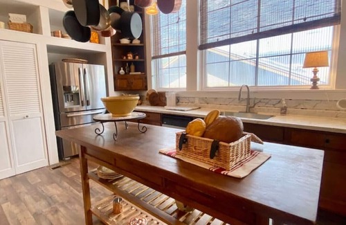 Exquisitely curated French Country Shopkeeper's Cottage. Inspired by art, history and travel while wrapping you in comfort and luxury. You will find yourself inspired and renewed in this designer space. Transported in time and place, you will live as though stepping back in time in the pages of a decadent art nouveau novel filled with Restoration Hardware sofas and bedding, down filled French Bergere chairs and alpaca throws. French Farmhouse kitchen with 2 private suites with ensuite spa bath.