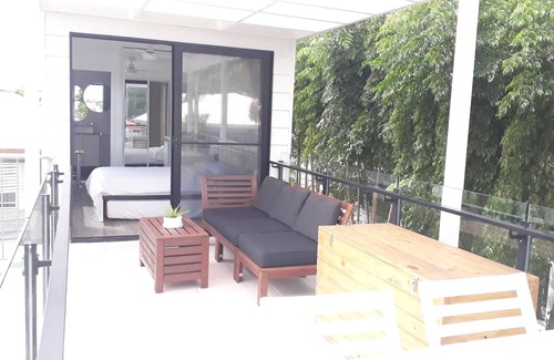 This tiny apartment located nearly 100m above the sea level with eye catching views from Brisbane port through to bayside islands. You could enjoy your privacy, the birds can only see you.