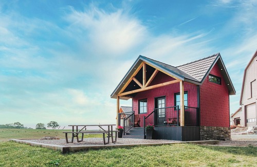 "The Sleepy Goat" Nature Lodge is a newly constructed 136 sq ft fully-equipped tiny house with all the comforts and conveniences of home. Relax under the stars at night with your private campfire, cook outdoors with your own barbecue or just prepare a simple meal with your own tiny kitchen indoors. A covered porch provides you with a view of the farmer's fields and ponds to watch wildlife visitors who come regularly for an evening drink.