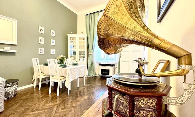The Spot with Green Chair - cozy space near Danube is located in Budapest, just a 19-minute walk from Blaha Lujza Square and 1.5 miles from Keleti Pályaudvar Metro Station. This apartment offers free private parking, a mini-market, and free Wifi. The property is a 13-minute walk from Hungarian National Museum and within 1.5 miles of the city center. Offering a balcony and city views, the spacious apartment includes 1 bedroom, a living room, satellite flat-screen TV, an equipped kitchen, and 1 bathroom with a bath. The comfortable, air-conditioned accommodation also comes with soundproofing and a fireplace. Additional in-room amenities include wine or champagne. Keleti Train Station is 1.7 miles from the apartment, while Dohany Street Synagogue is 1.2 miles away. Budapest Ferenc Liszt International Airport is 7.5 miles from the property, and the property offers a paid airport shuttle service.