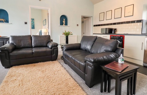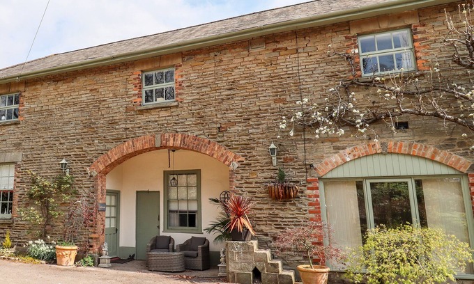 This first-floor apartment within a Grade II listed coach house rests in Lydney, Gloucestershire and can sleep four people in two bedrooms.