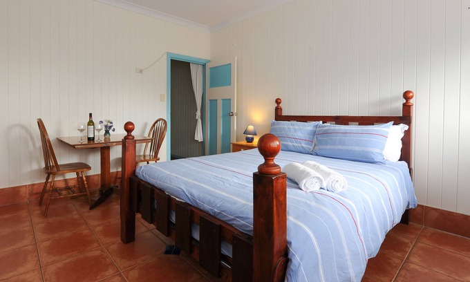 The Stable Room is a spacious studio with queen bed, dining table, microwave, fridge, air con, bathroom and its own private courtyard with BBQ. The studio is situated right beside the lake so although it does not have direct views, all you have to do is step outside to enjoy everything Samford Lakes has to offer. Guests have full use of the swimming pool, communal outdoor entertainment with fridge, BBQ and wood-fired pizza oven, sauna, tennis court, row boats, fishing (bring your own rods).