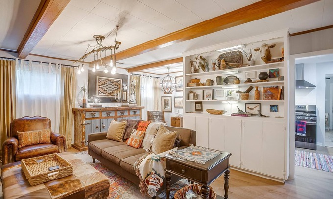 Enjoy your own special Cowtown experience at this cozy, quiet space located in the heart of Fort Worth, just minutes from the historic Fort Worth Stockyards. The Stockyard Exchange, a tastefully appointed three-bedroom, two-bath house, features unique Old West touches, from original Western artwork (complete with informative plaques) and authentic Native American crafts to “ranch chic” furnishings sure to bring out your “inner Texan.”