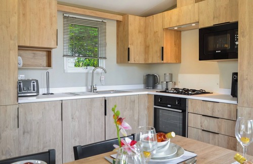 Guests will love the contemporary living space with immaculate kitchen and covered hot tub in the garden. The lodge park is ideally placed to enjoy York, the Yorkshire Wolds and Coast beyond.. 4 steps to entrance.