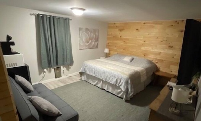 Fully furnished remodeled studio located in the heart of Sodus Point, NY. This cozy studio that offers a comfortable king sized bed, small futon, smart TV, Wi-Fi, and private parking is walking distance to the Sodus Point lighthouse, popular restaurants/bars, and many fishing charters! This studio is ADA compliant with a very large bathroom. Boat rentals are available only 500 feet away. We look forward to you staying with us!