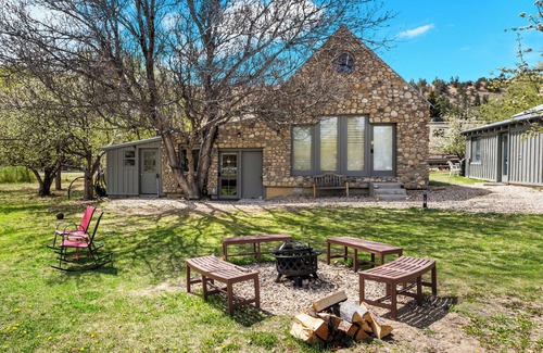 The River Stone Inn at Bryce is centrally located just 10 miles from Bryce Canyon National Park and 7 miles from Grand Staircase National Monumnet. Spacious private studio with leather sofa and reading loft. King sized bed, two extra-long twin beds and a fold out child's bed. Beautiful craftsmanship. Private micro bath with shower. Located in freestanding building behind the main house with private outside entrance. Kitchenette includes refrigerator, microwave and coffee maker with coffee, teas, and hot chocolate. High speed fiber optic internet included.