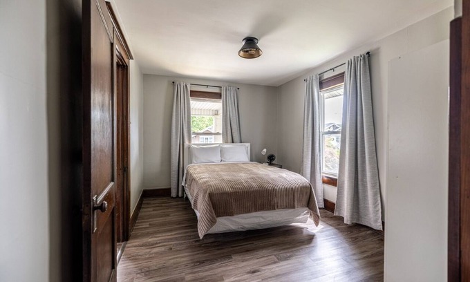 This 120 year old home has some vintage mixed with lots of new updates. The home has been painted inside, along with new flooring and an updated kitchen. The laundry area has been newly updated making the space easier to access the home from the back and do any laundry that is needed. Each of the 2 bedrooms come with a queen sized bed and storage closet. The home has a couch, chair, TV and super fun game table, solitaire anyone? Keyless entry makes accessing the home easy. The Suite Retreat is nestled near downtown Muncie, Ball state university and Ball hospital. If you live an active lifestyle the Suite Retreat is a block from the White river and walking trail.