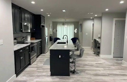 The Suite Spot- Sleeps 7-Only 4 min from downtown has 4 Bedrooms , 3 Bathrooms, and max occupancy of 7 people. The minimum rental for this property is 1 nights, but this can change depending on the season you plan on staying. Previous guests have given good rated it, and VRBO labeled it a top-rated House because of the excellent services rendered by the owner or manager of this House, and has consistently provided great experiences for their guests. Most families or guests that use it recommend it to their friends and some of them are repeat guests. House has a friendly neighborhood, and the Tulsa has interesting places to visit. If you want to learn more about the House in Tulsa, such as places to visit and things to do nearby, you can check below to learn more.