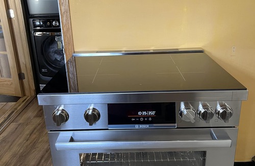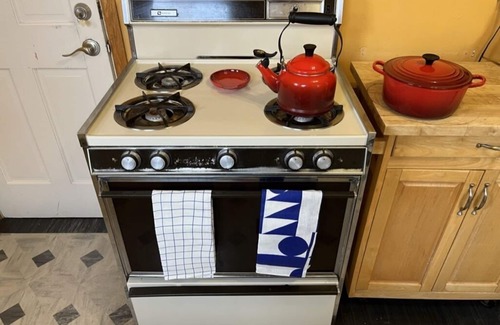 Making use of the strong Colorado sun rays, our home and water are heated with solar hot water. The large front window lets in ample sunshine on the large reclaimed wood dining table that seats 6 comfortably. We have a cute, vintage 1950s kitchen and bathroom. Electric car plug-in located at the back of the driveway. Adirondack chairs in the front lawn to soak in the Colorado sunshine and peek the Mountain views.
