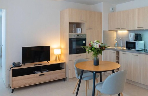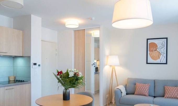 Maison Holya offers you this charming 44m2 apartment with a view of the city, located in a quiet and secure residence in the city center of Limoges. Enjoy a pleasant and dynamic stay in the heart of the famous city known for its decorated porcelain.