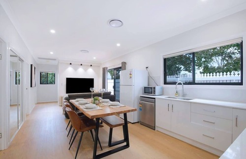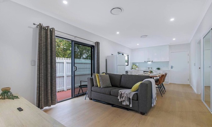 Escape to a bright, calming retreat designed for relaxed living and effortless Brisbane adventures. Inside, a cosy lounge invites you to stretch out on the sofa for movie marathons on the large TV, with WiFi ensuring smooth streaming. The open-plan kitchen is fully equipped with an oven, stove, microwave, and dishwasher, while the dining table offers a welcoming place to gather over shared meals.
