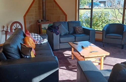 TheTigers Lair is a sandstone home.It is warm and cosy in the colder months,and nice and cool in summer.Veiws of farmland and forests,mountain veiws of the Great Western Tiers.Mole Creek is natures playground,bush walking,waterfalls,lakes,fishing,wildlife,rivers.There are three cafes and the famous Tiger Bar hotel,Cradle Mountain is an hours drive,Deloraine is a 15min drive.IGA store just around the corner