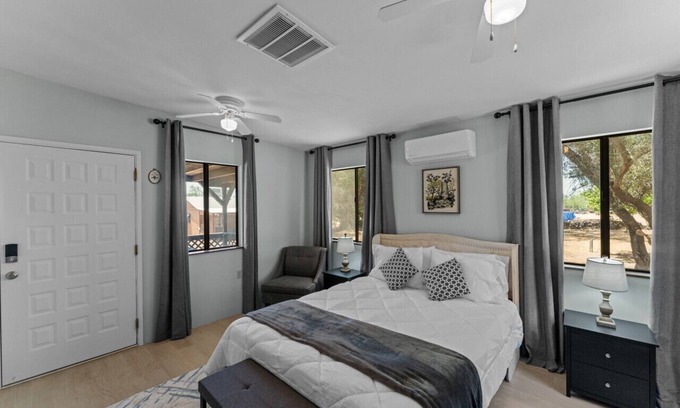 Front gate must be closed during your stay there is no lock, head to the front left of the property to Under the Stars Glamping at Sahuarita Village. You can't miss the bright white tent! Parking is alongside it. Please do not block driveway.