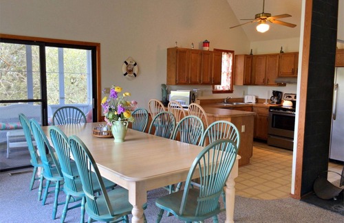 Rather cook outdoors? A gas grill is provided. And, with dining room seating for 10 plus a breakfast bar, family meals will be a breeze! Sun and shade decks as wells as a cozy screened in porch offer multiple areas to relax, enjoy the scenery, and curl up with a good book!