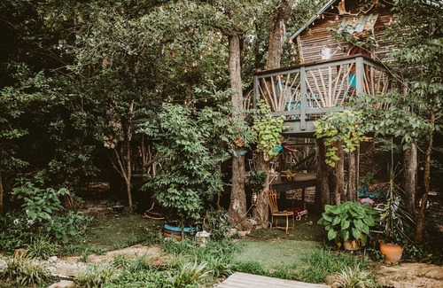 Bring back your childhood dream of staying in a treehouse. Whether you are an artist seeking to escape & create, looking for a quiet and intentional time in nature, this lofty escape is outfitted with great amenities. Enjoy our treehouse with one full size bed. The treehouse is stocked with coffee, a small refrigerator, and a microwave. There is access to a modern bathhouse (full private shower room with eco friendly amenities, separate toilet).