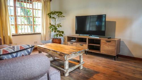 Providing a garden, The Treehouse offers accommodations in Nakuru. This property offers access to a terrace and free private parking. The pool features a pool bar and garden views. With free Wifi, this 3-bedroom villa provides a flat-screen TV, a washing machine, and a fully equipped kitchen with an oven and microwave. Guests can take in the ambience of the surroundings from an outdoor dining area or keep warm by the fireplace on colder days. For added privacy, the accommodation features a private entrance. Guests can eat at the on-site family-friendly restaurant, which is open for dinner, lunch, and brunch. The villa has a picnic area where you can spend the day outdoors. Egerton Castle is 6.4 miles from the villa, while Lake Nakuru National Park is 11 miles away. Eldoret Airport is 96 miles from the property.