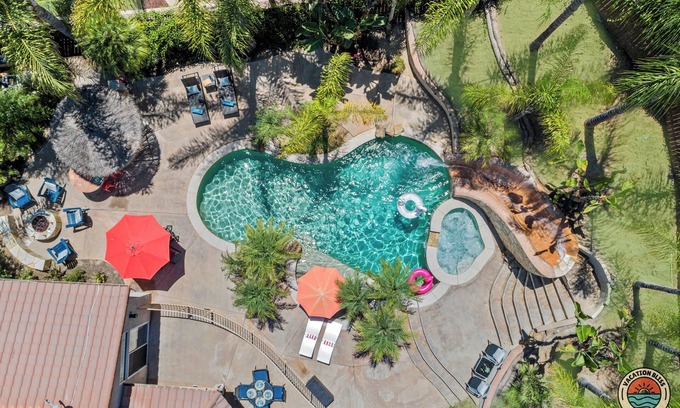 Get ready for your next epic vacation! With a waterslide, pool, spa, tiki bar, fire pit, and games galore, you’ll have your own private tropical paradise! Challenge the crew to a game of billiards or ping pong, sweat it out in the gym, or host your next backyard bbq. There's room for up to 16 guests with plenty of entertainment options for kids and adults-so whether it’s a big family trip or a group retreat, everyone’s covered. Plus, you’ll be a quick drive from all the San Diego hot spots!