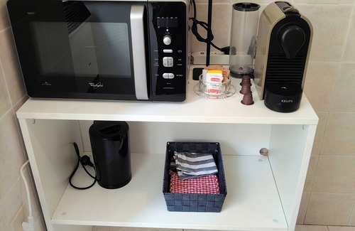 While you're here, you can enjoy all the comforts of home and more, including a stovetop and WiFi, as well as a bidet and air conditioning. Other amenities include laundry facilities, towels, soap, and toilet paper.