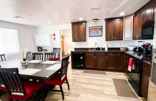 Enjoy this home that is centrally located and right next to all the shops, restaurants, and so much more. This home was built to host large groups. Sit back and enjoy in our fully stocked 2 kitchens, 5 bedroom, 4 Full bathrooms, 2 living rooms, 2 sets Washer/Dryers, Hot Tub, Fire Pit, grassy backyard & Air hockey. Lots of parking out front with room for 2 trucks with attached trailers (Boats, Seadoo,etc) and then some.