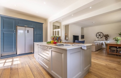 The dining room has retained all the charm and character of an age gone by where to dress for dinner is certainly the order of the day. The centrepiece is the large table made from local wood and surrounded by stylish upholstered dining chairs. For less formal dining, the large kitchen has a large breakfast table with stylish chairs, stools around the central island and sumptuous comfortable seating around the wood burning stove.
