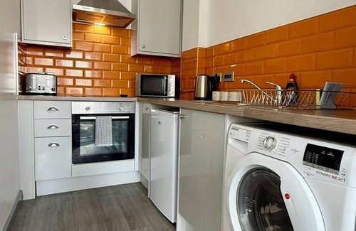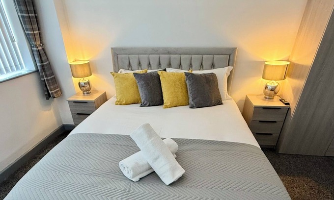 The Victoria! Family Apartment 202, a stunning one-bedroom apartment. Just a 4-minute walk to the town centre, this beautifully finished apartment features a king-size bed, a comfortable sofa bed, a fully equipped kitchen, an integrated oven and hob, fridge-freezer, and washing machine, modern bathroom, Wi-Fi, secure entry, Just 0.5 miles from Halifax Station with links to Leeds, Bradford, and Manchester. A perfect base for exploring the local sites and the beautiful West Yorkshire countryside.