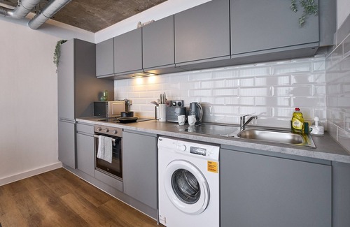 Welcome to your modern retreat in the heart of Warrington! This bright apartment offers comfort and convenience, perfect for professionals/couples. The open-plan living area is ideal for relaxing or entertaining, with large windows filling the space with natural light. The kitchen is fully equipped with modern appliances, and the bedroom offers a cozy place to unwind. With a contemporary bathroom, ample storage & close proximity to local amenities, this apartment combines style and practicality.