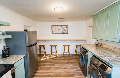 Enjoy the cutest accommodations in town. This 1 bedroom duplex features one queen bed. Great for extended stays, this space includes a front load washer, dryer, and all kitchen essentials. It's perfectly located within walking distance from award-winning nightlife, grocery stores, restaurants, a local favorite record store/coffee shop/café, the delicious Shipley's donut shop, and the fantastic Hburg Zoo & Serengeti Springs Water Park.