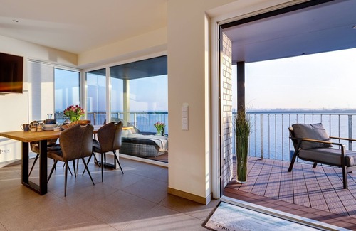 The Wave: luxury holiday apartment right on the water with heated lounger, sauna and fireplace | Apartment in Kappeln